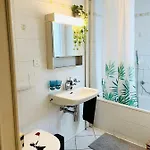 Enjoy the comfort of a bathroom in this apartment, which is equipped with a hairdryer, toiletries, and towels. Additionally, you'll find a separate toilet and a washing machine.